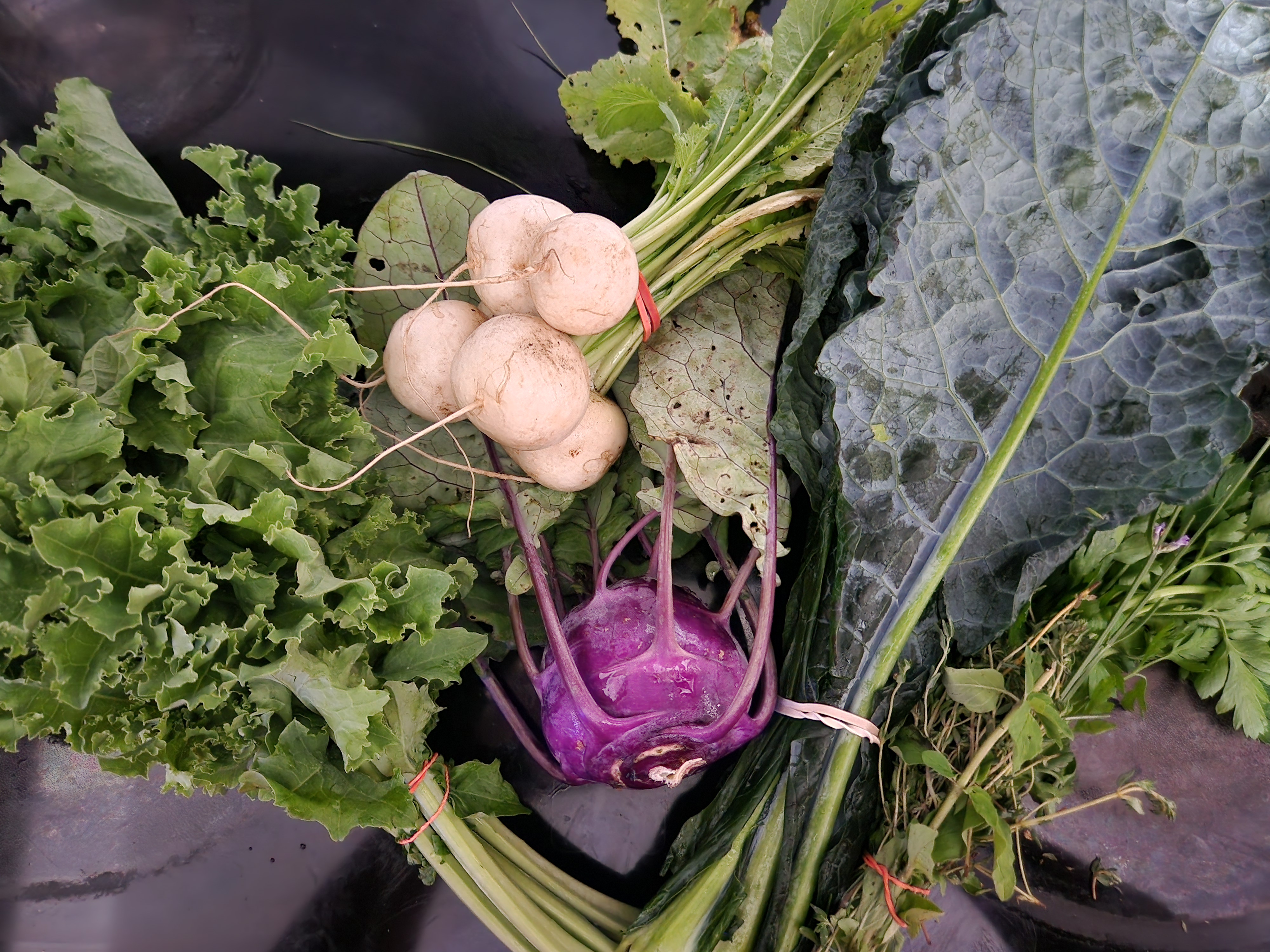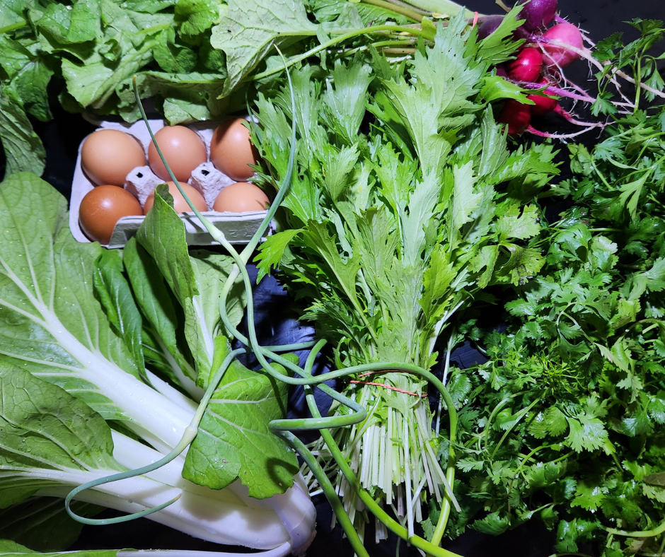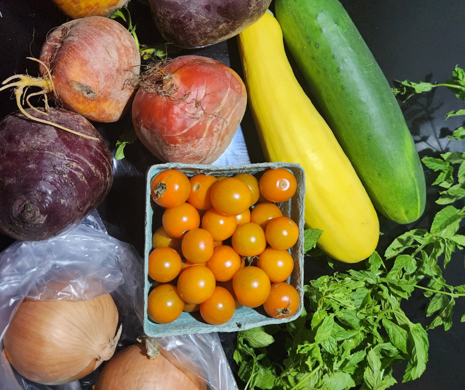 While our harvests change with the seasons, each share includes 6–8 seasonal items per distribution. The exact contents change week to week based on what’s ready to harvest.